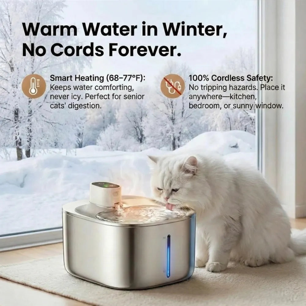 No cords, no limits—place it anywhere your pet loves. Intelligent temperature regulation keeps water perfectly chilled at 20–25°C (68–77°F), ensuring fresh, comfortable drinking all year round.